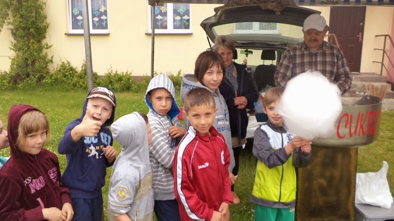 Na początku do każdej klasy przyszedł pan Bartłomiej Sołtysiak i rozdał każdemu z uczniów kartę startową, na której znajdowały się wszystkie konkurencje : skok w dal, rzut piłeczką palantową, skok na skakance, tor przeszkód, rzut do kosza,bieg wahadłowy oraz strzał na bramkę.Następnie wszyscy zebrali się na boisku przy szkole. Po zapoznaniu się z zasadami uczniowie przystąpili do wykonywania zadań. Ok. godziny 10:00 wszyscy poszli do szkoły na śniadanie i ciepłą herbatę do ogrzania się, ponieważ pogoda niestety nie dopisała. W czasie śniadania otrzymaliśmy paczkę z okazji Dnia Dziecka i talon na watę cukrową. Po zjedzeniu znów poszliśmy na boisko zaliczyć pozostałe konkurencje.Miał również odbyć się turniej piłki nożnej, ale niestety boisko było mokre i łatwo było się przewrócić.